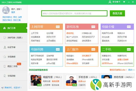 6.将会进入到360人工服务的界面,在这里肯定能够找到你想找到的任何电脑问题,如下图所示: