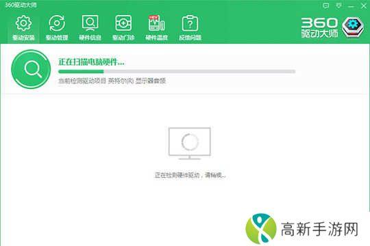 1.进入360驱动大师网卡版主界面之后,该软件将会自动帮助用户扫描电脑的硬件以及缺少的驱动,只需要耐心等待一会即可