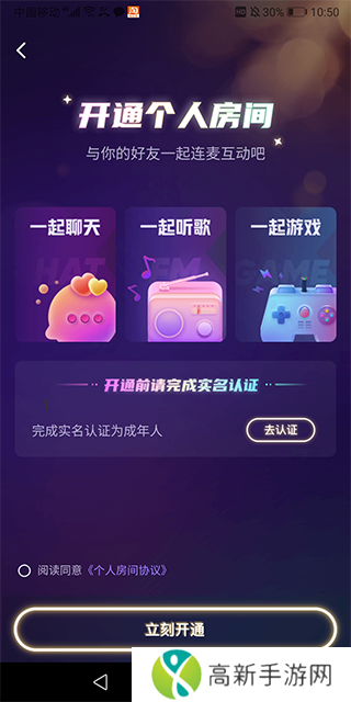 在打开的新页面中先完成实名认证,然后再按流程开通房间即可