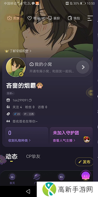 进入鱼耳app后点击底部【我的】进入个人中心界面中点击【我的小窝】