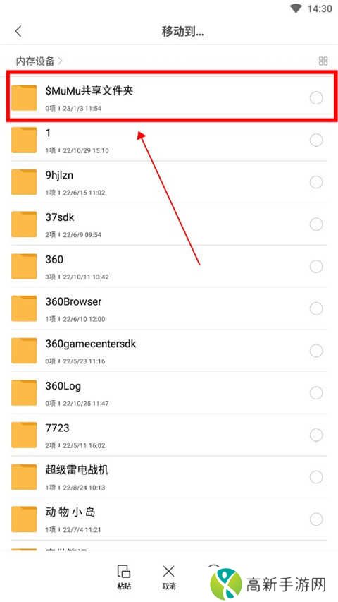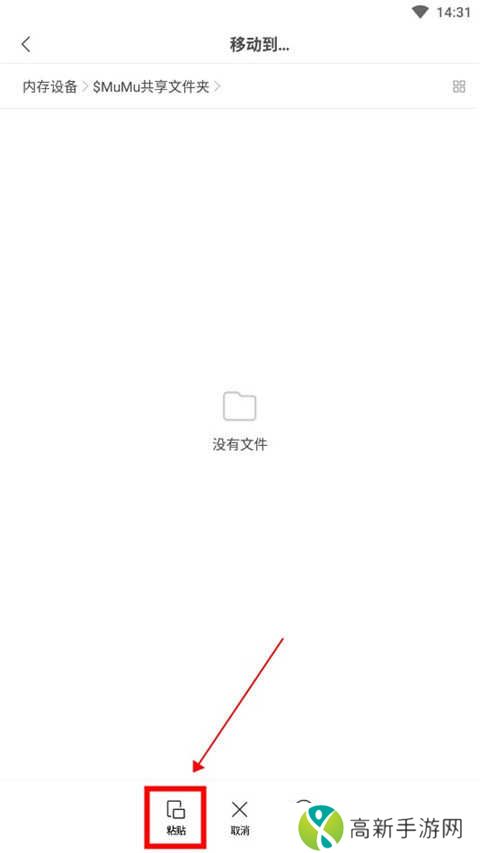 5、进入文件夹后点击下方的【粘贴】即可将它文件移动到此处。