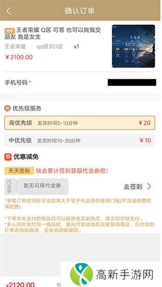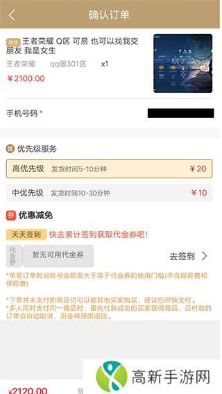账号金额为500元以下时,平台手续费为账号价值的10%