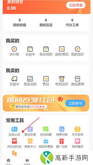 1.首先用户登录应用后进入【我的】页面中点击【实名认证】,然后按流程完成交易实名认证
