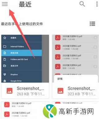 1、先从本站下载好xodo pdf中文版,下载完成后,打开软件,点击屏幕左上角的菜单图标。