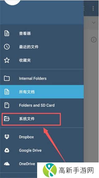 2、在屏幕左侧弹出的菜单栏中点击“系统文件”。