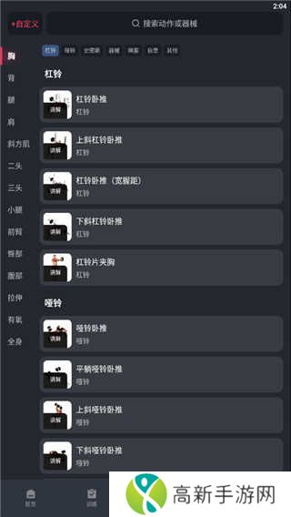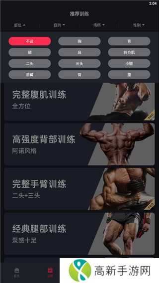 2、点击训练模块可查看身体每个部位的推荐训练;