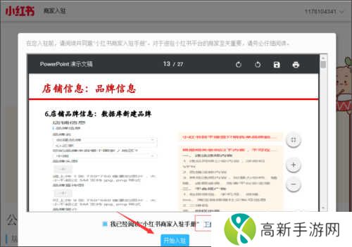 10、入驻手册可以下载下来继续查看,如果没有问题,点击开始入驻;