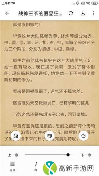 4、进入阅读界面,用户根据自己的要求进行背景色、字体、字号的设置