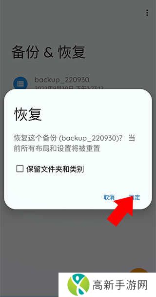 3、在打开的卡片中选择备份恢复按钮