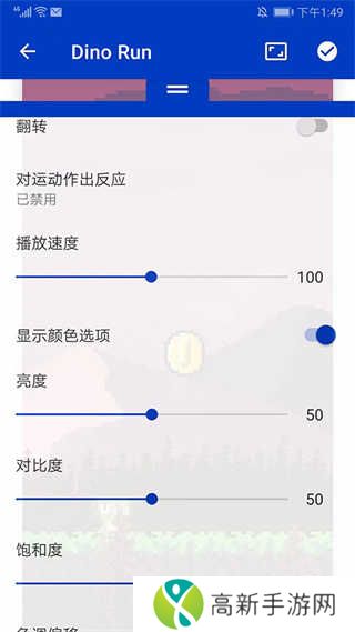 2、进入壁纸动态预览界面,选择下方【两条杠】图标,可进行翻转、播放速度、亮度、对比度、饱和度等设置修改,