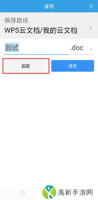 1 、新建文档在保存时,界面中有「加密」选项,点击即可进行加密设置。