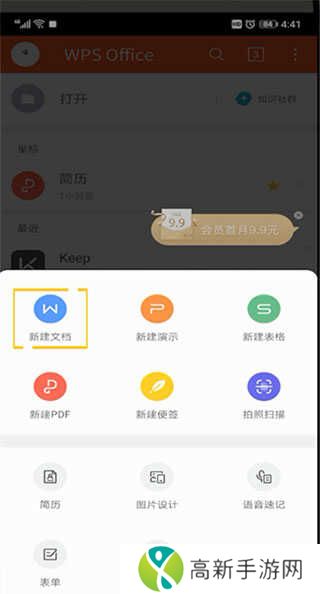 2、在弹出的界面中,选择新建文档;