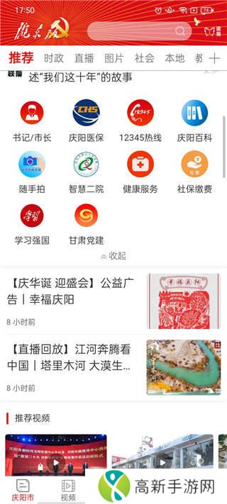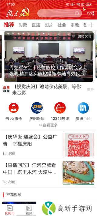 3.其中庆阳市中,有着推荐、时政、直播、图片、社会、本地、教育、文化、专题等选项;