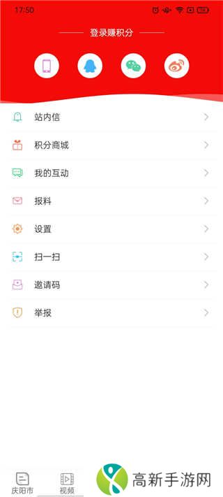 1.下载安装好掌中庆阳新闻app,通过手机号或QQ、微信登入;