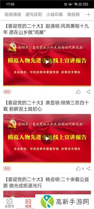 5.在视频板块中,拥有着庆阳视频、第一眼、庆听、视频海报、微视频等;