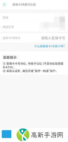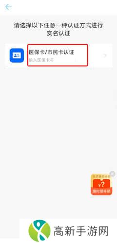 2.在实名认证页面中点击医保卡/市民卡认证按钮;