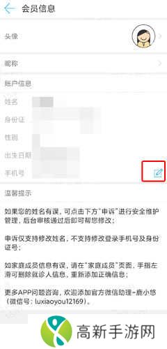2.在会员信息页面中点击手机号右侧的编辑按钮;