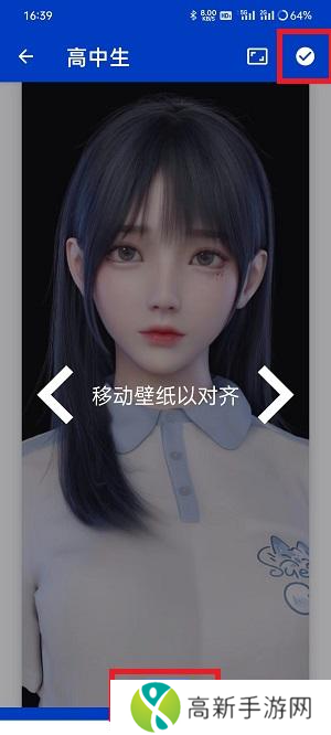5、然后会进入壁纸设置页面,左右移动设置壁纸显示效果,点击下方按钮可设置更多功能,在右上角点击【确定】使用该壁纸;