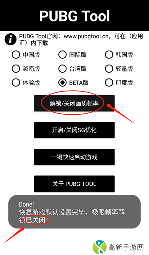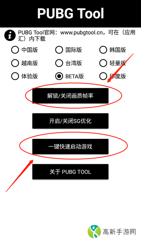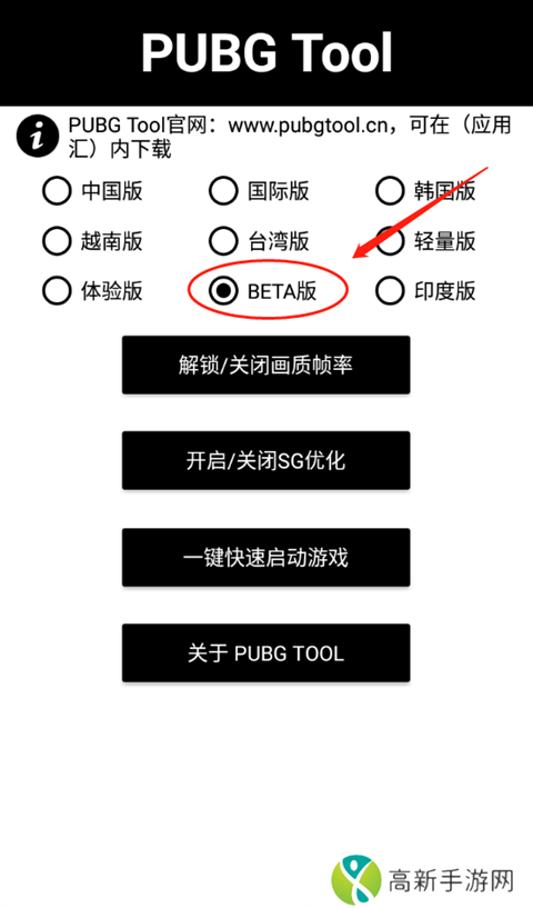 2、进入pubgtool主界面,选择相对于的PUBG版本(PUBG国际服体验服所对于的是BETA版);