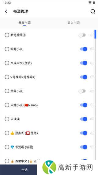 2、在里面有很多书源可以供用户参考,譬如:笔趣阁、鲲弩小说、八戒中文等