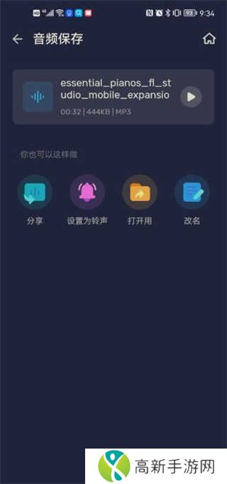 4、裁剪完成后可试听保存,并还支持一键快速分享、设置为铃声、改名等操作;