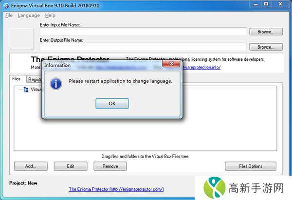 1.运行软件,EnigmaVirtualBox默认是为英文版