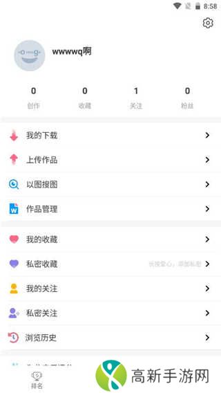 7、进入我的界面,即可看到该账户收藏、粉丝、下载上传等情况;