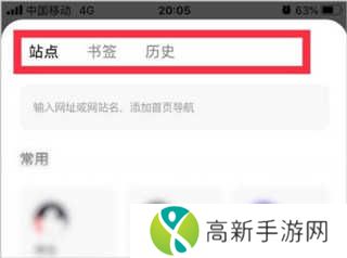 3、跳转到如下界面,这里可以添加站点、书签、历史到主页;