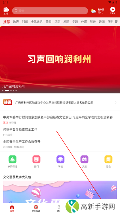 1、打开手机利州融媒app首页,点击下方个人中心;