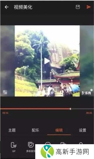 添加音乐后,主编辑界面上方的音量调节栏可调整音乐和视频原音的比例。