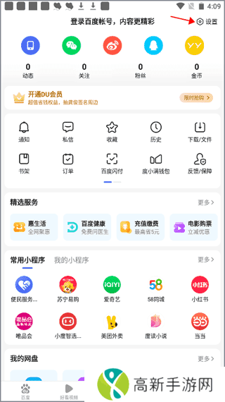 1、首先打开我们手机中的百度app免费最新版,进入个人中心页面,并找到【设置】功能按钮;