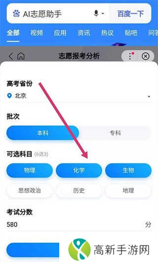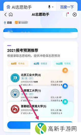 打开手机浏览器,百度搜索AI志愿助手,点击左下角的AI志愿;