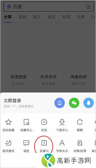 7、进入网页后,还是根据上面的步骤,点击下方的三条横线,再点击【多窗口】就可以查看多个窗口;