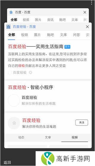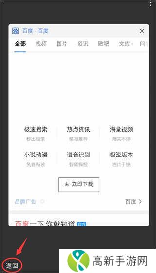 4、进入多窗口页面,就会将刚才的网页缩放为一个窗口,点击下方“返回”就可以退出多窗口;