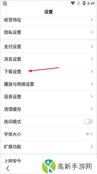 2、进入设置界面后,找到【下载设置】功能,并点击;