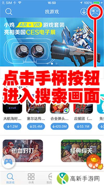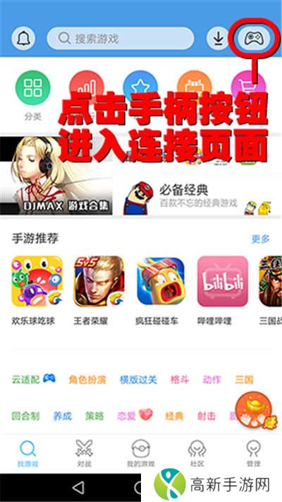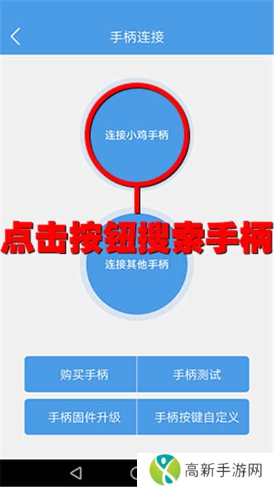 c、页面切换后,点击屏幕上的【连接小鸡手柄】进入手柄搜索页面;