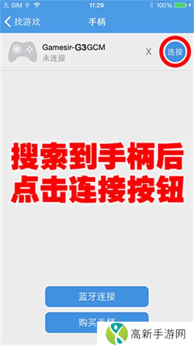 e、搜索成功后,点击【连接】,连接成功后手柄会震动,【苹果指示灯】呈常亮状态。