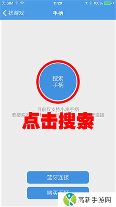 d、页面切换后,点击屏幕上的【搜索手柄】进入手柄搜索页面;
