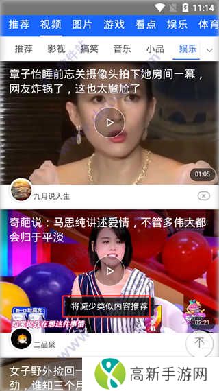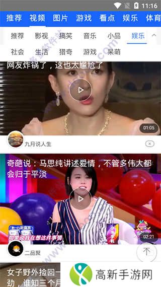 2、点击视频后,下面还会为用户细分了影视、高效、音乐、小品、娱乐、游戏等多种类型短视频;