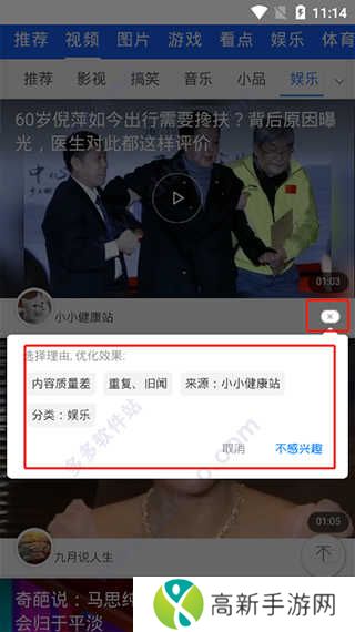 3、如果遇到不喜欢的不感兴趣的可以点击右下角的小叉,并选择理由或直接点击不感兴趣;