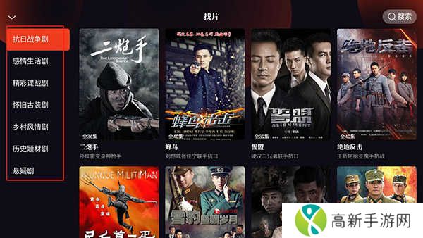 2、进入后大家可以看到有抗日战争剧、感情生活剧、精彩谍战剧、怀旧古装剧、乡村风情剧、历史题材剧、悬疑剧等类型;
