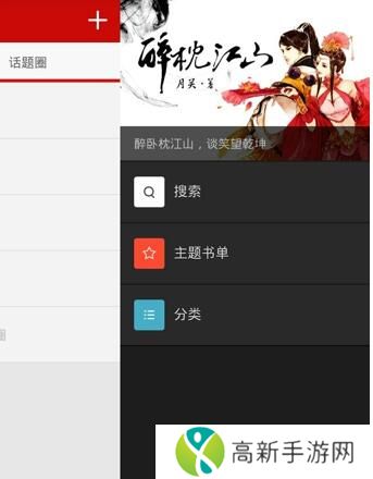7.右侧的加号按钮,点击后出现搜索、主题书单、分类三项。