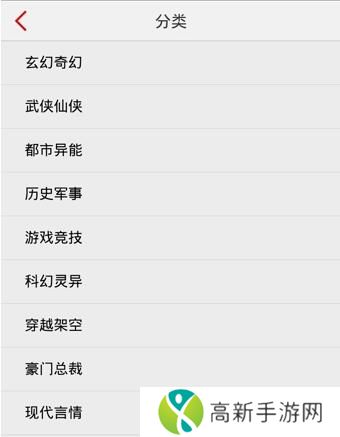 10.分类界面提供多种书籍类别选择,选择你喜欢的类别。