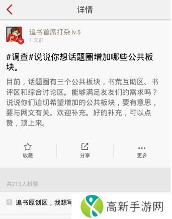 4.就像论坛一样,你能在里面发表你的看法,并发起投票、分享、收藏什么的,非常方便。