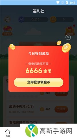 2、进入“福利社”之后,有一个签到,这个是可以获得金币的,但是需要登录该应用哦。