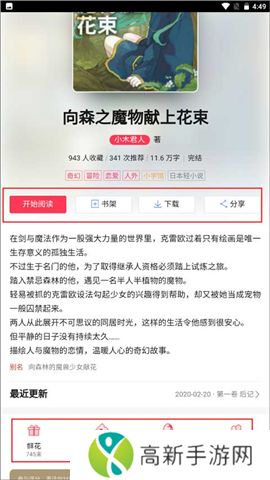 2、在详情页面中你可以看到小说的简介、功能选项按钮以及打赏区域,点击开始阅读即可进入到阅读界面。
