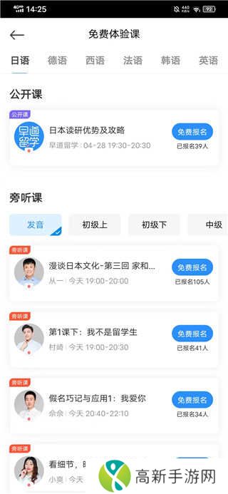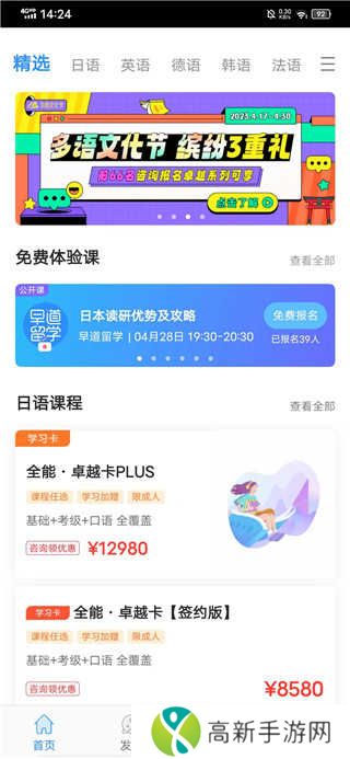 全新教学模式,和老师双向互动,轻松学日语、英语、法语、德语、韩语、西语!