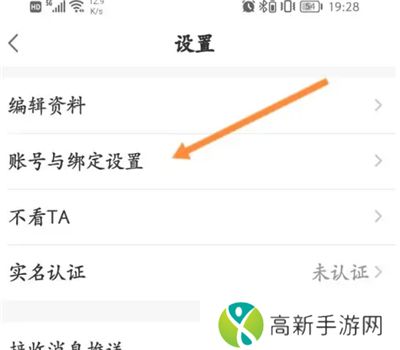 3、点击上面的账号与绑定设置选项。
