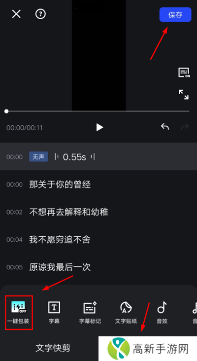 4、剪辑完成后,点击【一键包装】即可为你自动生成剪辑好的视频,视频生成后,你可在页面内预览视频剪辑效果,对视频剪辑效果满意就可点击【保存】,将剪辑好的视频保存在手机内。