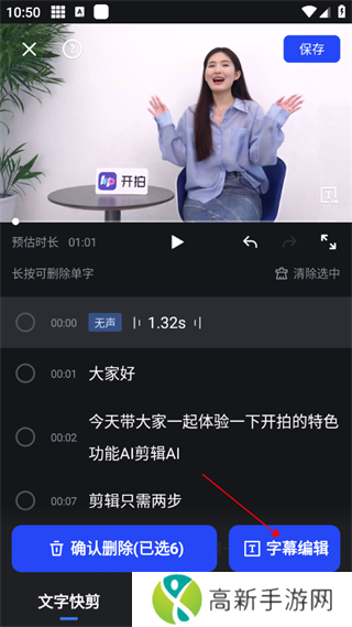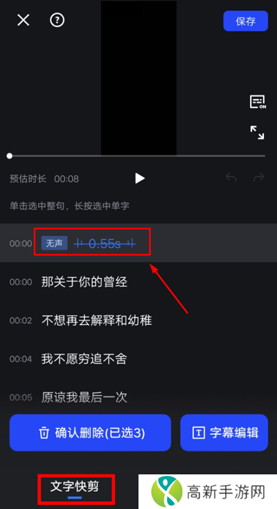 3、【文字快剪】可智能别视频:语气词,无声片段,重复片段;选中即可一键删除,快速提高剪辑效率!